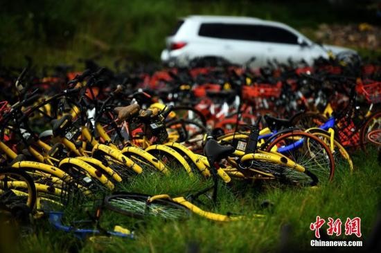 9月9日,現場堆積如山的共享單車。中新社記者 李進紅 攝