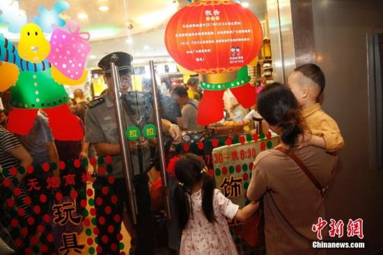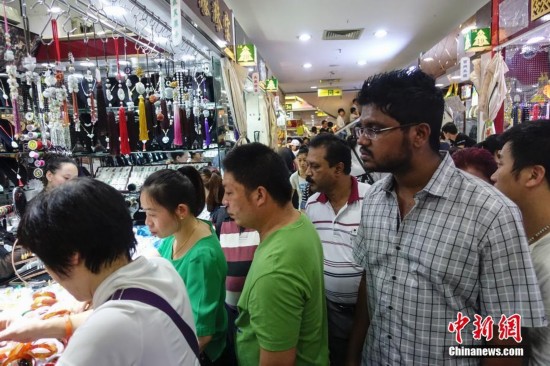 9月15日,幾位來自斯里蘭卡的游客慕名前來天意選購商品。當日,自1992年開業(yè)至今的北京天意市場迎來其在北京西城阜外大街營業(yè)的最后一日,商家趁機“瘋狂甩貨”,大批北京民眾也紛至沓來。這里曾是北京著名的小商品商城,聚集了數千家商戶。為疏解北京非首都功能,天意商城將于本月16日關門停業(yè)。中新社記者 崔楠 攝