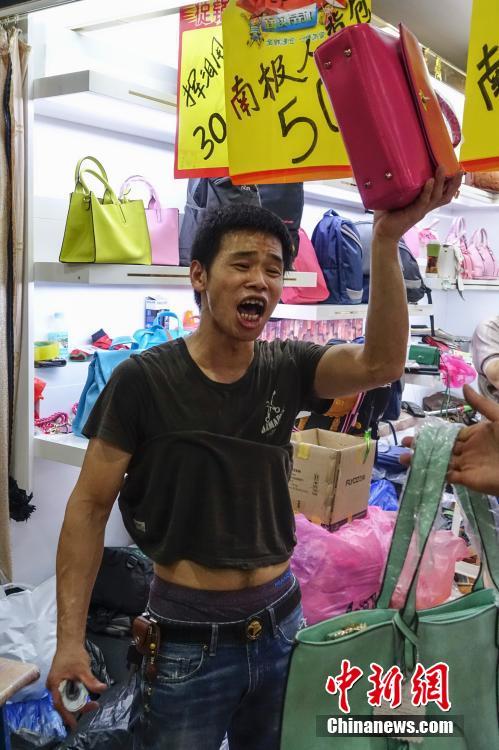 9月15日,一商家舉起商品大聲叫賣。當日,自1992年開業(yè)至今的北京天意市場迎來其在北京西城阜外大街營業(yè)的最后一日,商家趁機“瘋狂甩貨”,大批北京民眾也紛至沓來。這里曾是北京著名的小商品商城,聚集了數千家商戶。為疏解北京非首都功能,天意商城將于本月16日關門停業(yè)。中新社記者 崔楠 攝