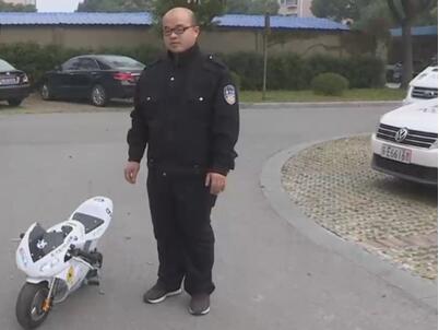 這輛白黑相間,同時有著寶馬和保時捷標志的車輛,就是民警剛剛被查獲的迷你摩托車。油箱、油門、剎車一樣也不少,只是這個頭,相比旁邊的警摩來說足足小了三四圈。這是11月2號下午兩點,警察在吳江云龍路上查處的車輛。監控上可以看到駕駛員被查后,用一個手抬起后輪,就輕松推走了這輛車。9mU安康新聞網