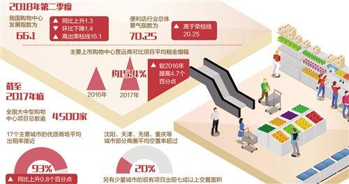 《中國購物中心發展指數報告》指出,2018年第二季度中國購物中心發展指數為66.1,同比上升1.3,環比下降1.4,高出榮枯線16.1,購物中心市場仍處于健康發展狀態。企業對下半年保持信心和樂觀的預期。