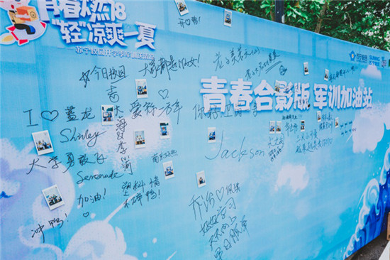 據介紹,本次蘇寧軍訓送清涼活動南農站現場,還特別設置了“青春合影版 軍訓加友站“活動,為軍訓新生們紀念軍訓的英姿,F場所有領取了清涼禮包的同學,可以與身邊好友一起,使用蘇寧校園提供的拍立得合照并將照片貼上展板。