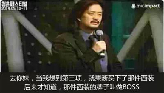 還記得紅遍微博勵(lì)志故事的那個(gè)boss哥嗎?那個(gè)從120萬西裝開始的億萬富翁。boss哥年輕時(shí)背包巴黎游,在街頭看上一家西裝店的西裝,上身一試,就像為他量身定做,簡(jiǎn)直不要太帥。一看價(jià)錢120萬韓元,心想這輩子買的衣服加起來都沒這貴。但回頭一看鏡子里帥的掉渣小伙,合計(jì)了一番整個(gè)旅行的費(fèi)用,買,買了!后來知道那個(gè)貴死人的西裝叫BOSS。