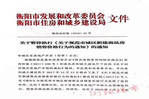 繼山東菏澤頂著壓力解除限售后,湖南衡陽大膽宣布取消限價。 衡陽樓市微信公眾號26日公布衡陽發改委和住建局聯合下發的一份文件,自2019年1月1日起暫停執行此前……