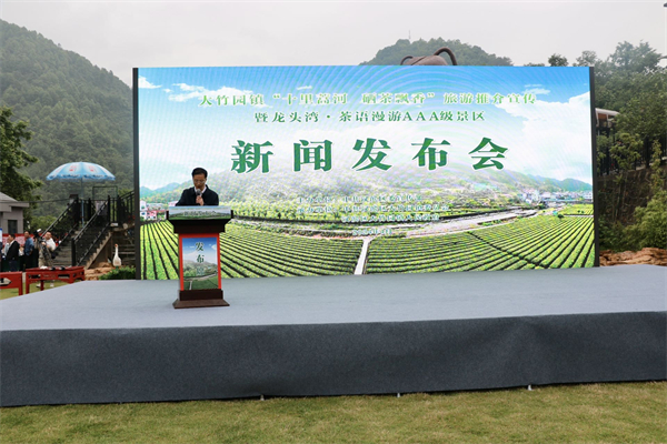 發布會上,大竹園鎮人民政府鎮長鄭濤向大家介紹了大竹園鎮茶旅融合及龍頭灣茶語漫游景區有關情況,龍頭灣茶語漫游景區形象大使單東培做了景區推介。
