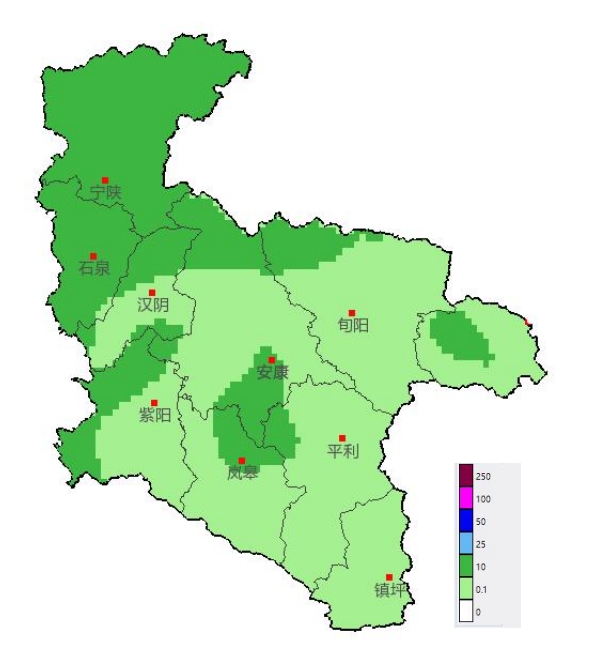 25日下午至夜間我市大部以小雨或小到中雨為主(0.1~15 毫米),局地伴有短時陣風和雷電天氣,西部、北部(寧陜、石泉、漢陰、紫陽、漢濱北部、旬陽北部)等縣(區、市)個別鎮辦可能出現短時強降水(最大小時雨強:10~25 毫米),局地降水具有極端性,累計降水量可能超過 40 毫米。