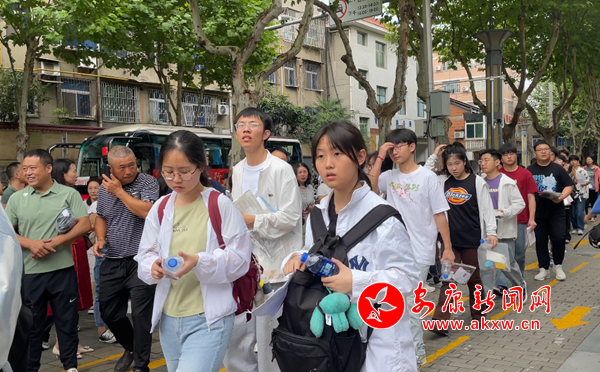 7日上午,考生們排隊有序進入考場。公安干警、消防人員、社區志愿者等各部門工作人員在城區各考場為考生保駕護航。家長、老師們也在考場外為學子們加油打氣。7pa安康新聞網