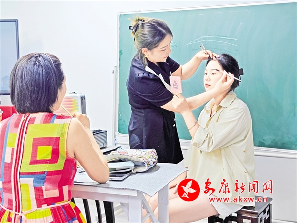 今年23歲的市民小陳在化妝課老師指導下學習眉形妝造
