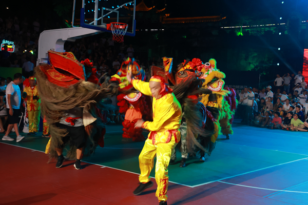 8月27日,賽事已經連續激戰了12個日夜,每一場比賽都讓觀眾們大飽眼福。晚9時左右,隨著第一場比賽的終場哨聲響起,整個廣場的氛圍并沒有因為比賽的結束而冷卻,反而因為接下來的精彩節目而更加熱烈起來。《南宮雄獅》作為中場休息的特別節目火熱上演。隨著激昂的鼓點響起,兩只色彩鮮艷、造型威猛的雄獅在舞獅者的操控下,瞬間吸引了所有人的目光。它們時而翻騰跳躍,展現出驚人的靈活與力量;時而憨態可掬,逗得觀眾捧腹大笑。舞獅者們更是憑借高超的技藝和默契的配合,將雄獅的威猛與靈動演繹得淋漓盡致。