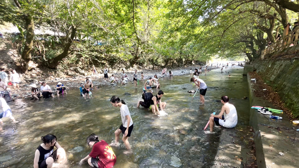 “咱們嵐皋很貼心,早早就推出了合理的一日游、三日游路線,我們白天就來景區看美景,晚上去看球賽,真是山美水美賽事美!”來自西安的游客陳女士說。