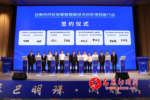 會上,市委常委、常務副市長黃戈授予東莞市電子信息產業協會、珠海市陜西商會、中山市陜西商會、佛山市陜西商會、江門市陜西商會“安康市對外經濟合作聯絡站”標牌。中國科學院院士、南方科技大學教授趙天壽發表了《碳中和儲能技術助推安康經濟高質量發展》主旨演講。市發改委、市市場監管局、漢濱區、白河縣、瀛湖生態旅游示范區等部門和縣區,圍繞富硒食品、新型材料、生態旅游、生物醫藥等重點產業鏈,發布了國際經濟合作項目。市科技局、市行政審批服務局、陜西信合安康審計中心圍繞科創政策、營商環境、金融保障等方面進行專題推介,多名科研院所專家現場發布科研成果產業化項目。現場集中簽約光伏組件、智能終端、毛絨玩具等16個招商引資項目,總投資44.9億元。