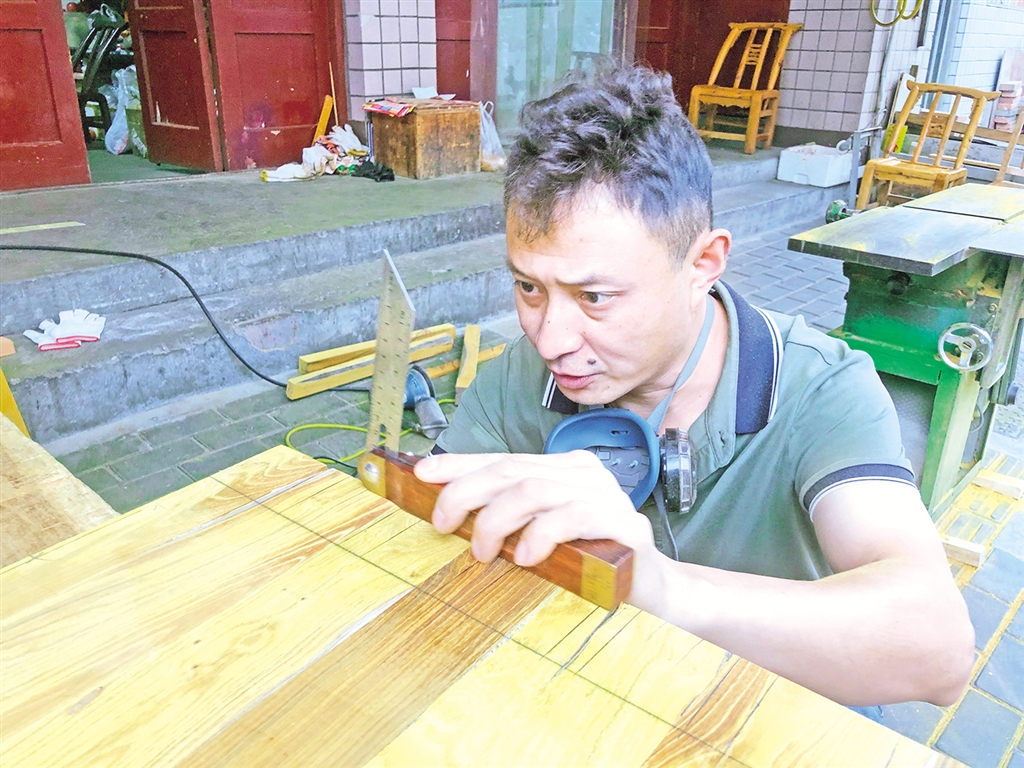 隨著工業(yè)化的發(fā)展,現(xiàn)在定做全套家具的人少了,更多的是做一些長條桌、馬扎、靠背椅子、菜墩子等等,像鼓樓西、東關(guān)一些傳統(tǒng)老字號餐飲店里用的就是馬金平做的桌椅,看起來古樸、坐起來舒服。
