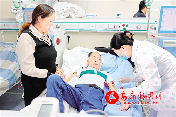 龔光憲陪著丈夫在縣醫院做透析zZf安康新聞網