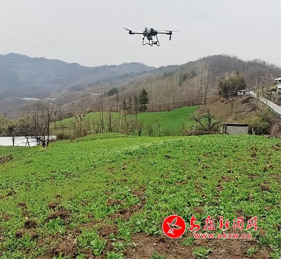 眼下正值春季管護黃金期,在白河縣冷水鎮興隆村糧油示范田里,無人機在油菜田上方來回穿梭,均勻細密地噴灑農肥,抑制病菌繁殖,提高油菜產量。周紫薇 攝