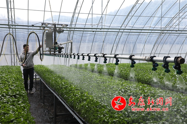 春日的安康市漢濱區建民街道天瑞塬生態園區生機盎然,智能溫室中的自動噴淋澆灌、APP自動管護、機械化播種,充分展現現代農業科技魅力。鄭時根 攝