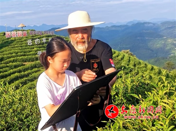 寧靜的校園里,一堂別開生面的美育課正在教學樓三樓展開。孩子們手握畫筆,將青瓦白墻的鄉村建筑、青蔥翠綠的茶山,化作一幅幅充滿童真卻飽含深意的水墨畫。