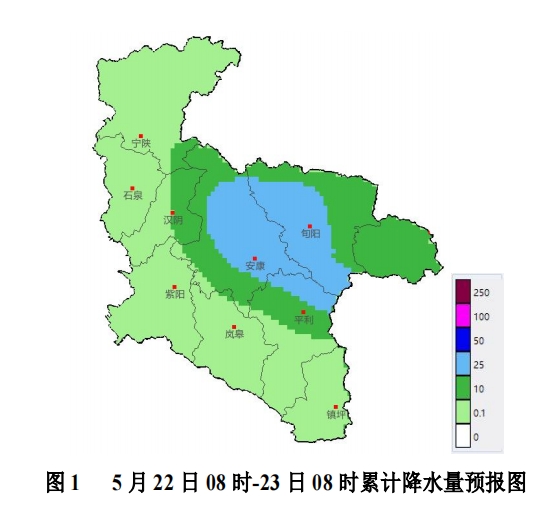 5月22日:陣雨或雷陣雨(5—25毫米,局地可能超過30毫米),并伴有雷雨大風、短時強降水或冰雹等強對流天氣;
