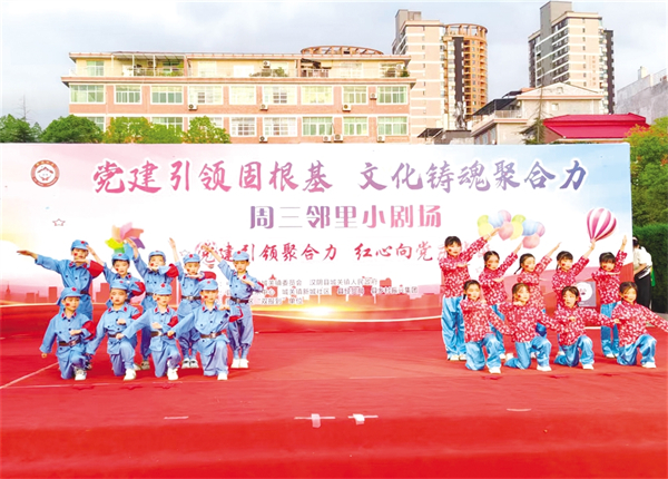 為傳承紅色基因,賡續紅色血脈,漢陰縣城關鎮新城社區在鳳凰廣場開展慶“七一”文化惠民演出。 張輝 攝