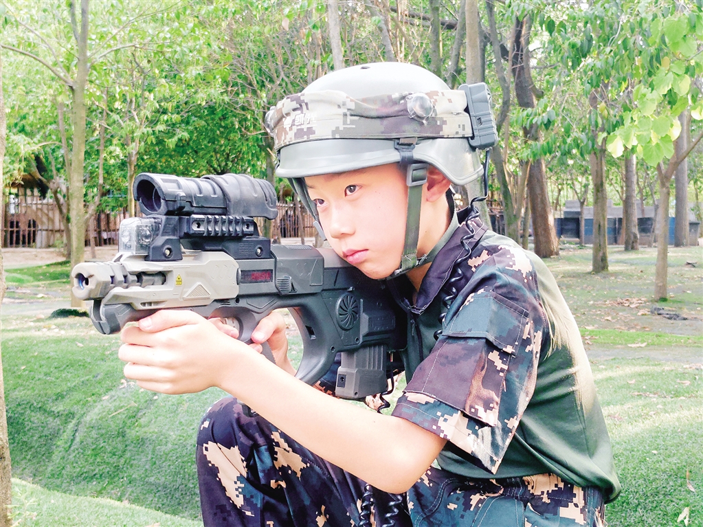訓練場上,30多位身姿挺拔的退伍軍人擔任教官。匕首操練習中,教官細致糾正每個握姿;擒敵拳的動作在口號聲中虎虎生風;真人CS戰區硝煙彌漫,孩子們分組“激戰”,在掩體間穿梭配合;5公里拉練,小個子被大哥哥牽著,無人掉隊;火箭筒體驗區前,扣動扳機的瞬間,歡呼聲直沖云霄。