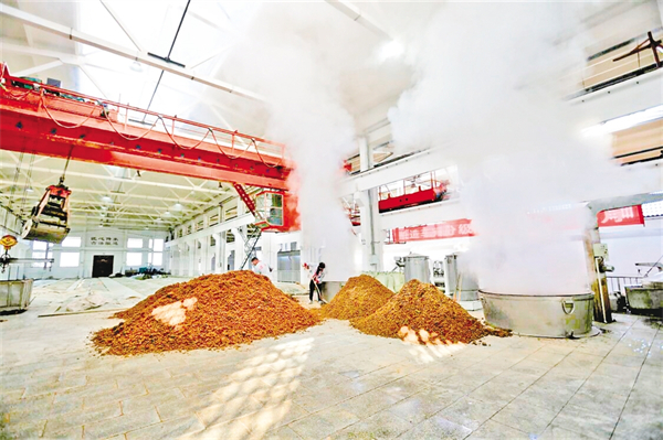 而在這一產業鏈的上游,陜西瀘康酒業股份有限公司屹立多年。走進瀘康酒業集團釀造車間,蒸騰的熱氣裹挾著濃郁窖香撲面而來。工人們正將東北優質高粱、漢陰產大米及蒸熟、攤涼后的稻殼投入窖池,傳承百年的釀造技藝在氤氳蒸汽中煥發新生。