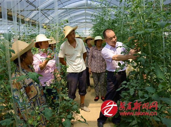 忠誠村黨支部書記劉瑞紅現場給村民講解如何修剪圣女果