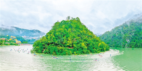 10月5日,嵐皋縣舉辦2025中國嵐韻“夢見蓬萊杯”歡樂槳板大獎賽,吸引眾多游人前來觀賽觀光。唐軍 攝9KX安康新聞網