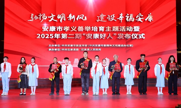 本次活動(dòng)以“弘揚(yáng)文明新風(fēng) 建設(shè)幸福安康”為主題,由市委宣傳部主辦、石泉縣委和縣政府承辦,旨在深入學(xué)習(xí)貫徹黨的二十屆四中全會(huì)精神,扎實(shí)推進(jìn)崇德向上幸福安康建設(shè)。活動(dòng)現(xiàn)場(chǎng),通過(guò)播放典型人物短片、現(xiàn)場(chǎng)互動(dòng)訪談等形式,生動(dòng)再現(xiàn)了陳登發(fā)、高虎、黃壽琴等好人代表的感人事跡。市級(jí)領(lǐng)導(dǎo)及“中國(guó)好人”“陜西好人”等先進(jìn)典型代表為28名新入選的“安康好人”頒發(fā)紀(jì)念證書。活動(dòng)現(xiàn)場(chǎng)同時(shí)發(fā)布了2025年安康市“新時(shí)代好少年”名單,24名青少年獲得殊榮。
