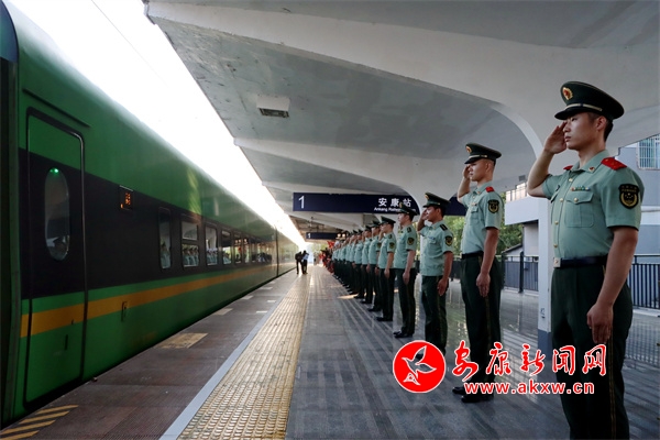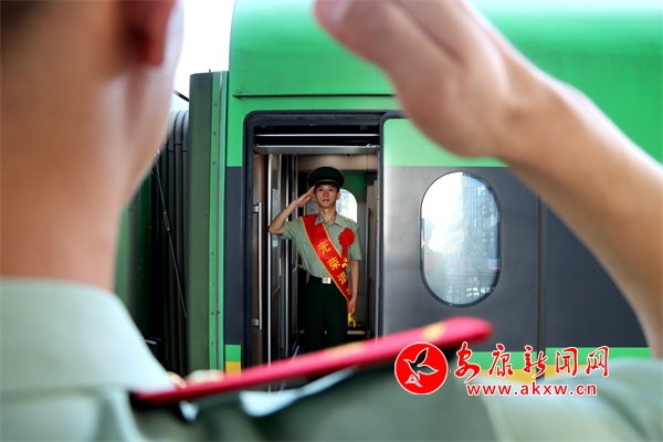 昔日從軍報國夢,今朝卸甲鑄征程。伴隨著汽笛聲響起,在難舍難分中,所有退伍老兵帶著支隊領導的囑托和戰友們的祝福,揮淚告別,踏上歸途。送行官兵列隊敬禮,向老兵們表達最后的敬意。