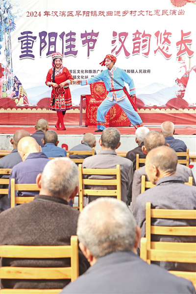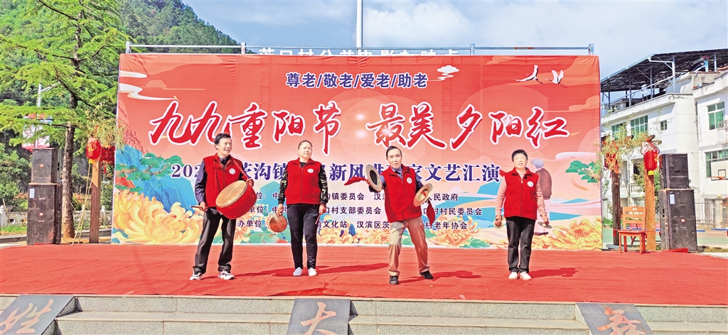10月9日,漢濱區文旅廣電局聯合茨溝鎮茨口村舉辦了“九九重陽節 最美夕陽紅”孝義新風進萬家文藝活動;顒右“尊老、敬老、愛老、助老”為主題,茨溝鎮茨口村老年協會分會還為本村98名老年人統一購買了紅馬甲和過冬的皮鞋,讓老人們度過一個幸?鞓返闹仃柟潯 余遲 攝