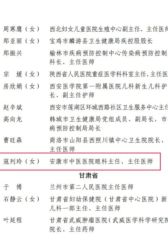 寇列玲,女,漢族,1975年10月生,陜西黃陵人,中共黨員,主任醫(yī)師,現(xiàn)任安康市中醫(yī)醫(yī)院眼科主任。該同志醫(yī)術(shù)精湛,服務(wù)患者耐心細(xì)致,心系社會(huì),開(kāi)展近視防控公益行進(jìn)校園100余次,行程20萬(wàn)公里,篩查學(xué)生10余萬(wàn)人,受益學(xué)生50余萬(wàn)人,解除安康山區(qū)數(shù)以萬(wàn)計(jì)眼病患者痛苦,避免因盲致貧、因殘致貧。帶領(lǐng)眼科團(tuán)隊(duì)銳意進(jìn)取,眼科入選國(guó)家區(qū)域診療中心培育單位、國(guó)家中醫(yī)優(yōu)勢(shì)專(zhuān)科建設(shè)項(xiàng)目、陜西省區(qū)域診療中心。參與國(guó)家中醫(yī)藥管理局《前部缺血性視神經(jīng)病變》臨床指南制修訂,完成省中醫(yī)藥管理局十大病種《玻璃體積血》《消渴目病》創(chuàng)新項(xiàng)目,取得陜西省科技成果三等獎(jiǎng)2項(xiàng),被評(píng)為安康市第四屆十佳醫(yī)生稱(chēng)號(hào),榮獲安康市十佳科技青年獎(jiǎng),被評(píng)為安康市有突出貢獻(xiàn)專(zhuān)家,入選“西部之光”訪問(wèn)學(xué)者。