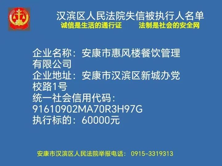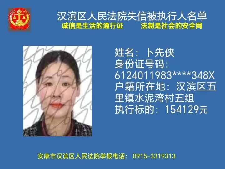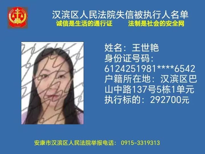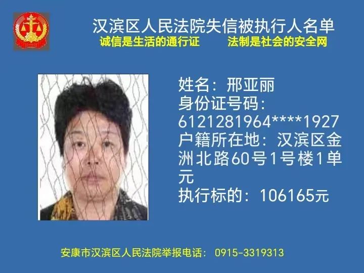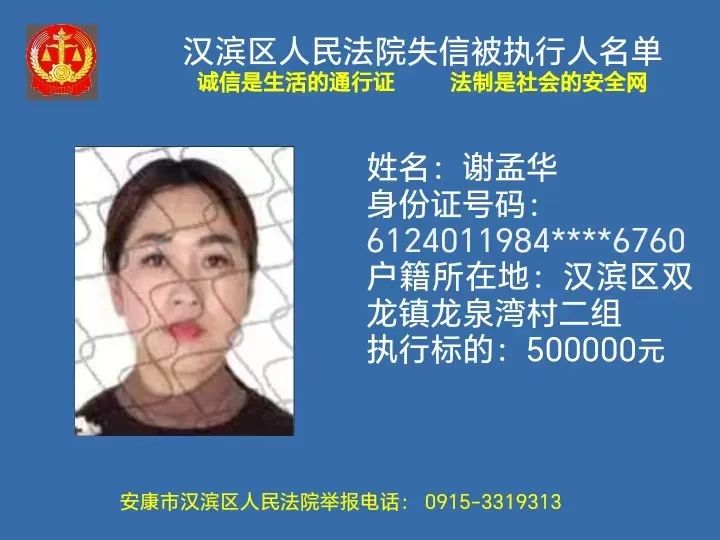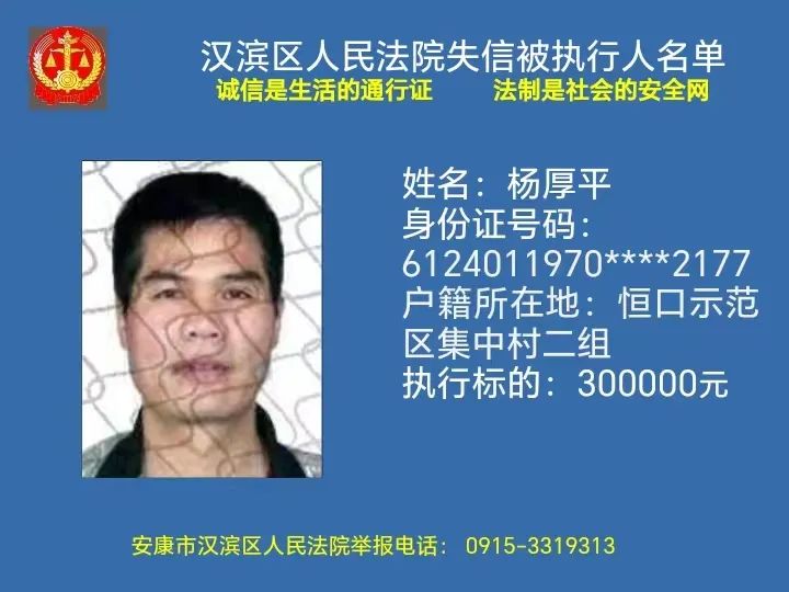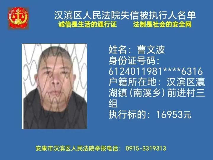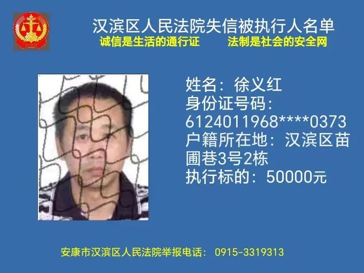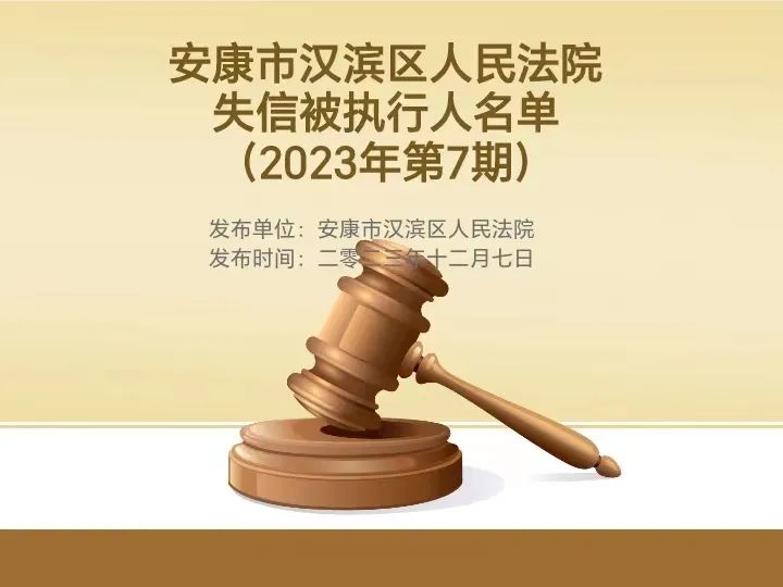曝光失信 | 安康市漢濱區人民法院失信被執行人曝光名單(2023年第7期)