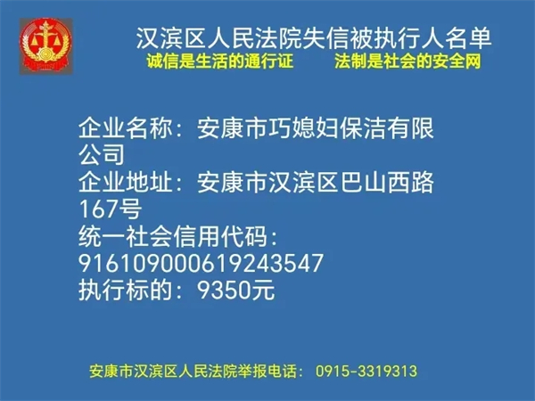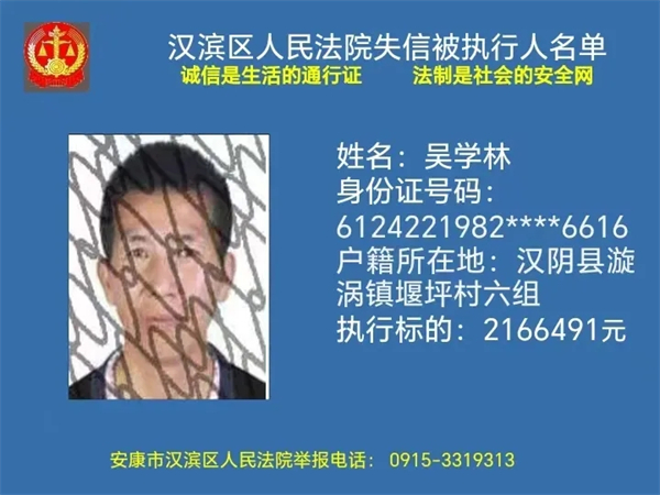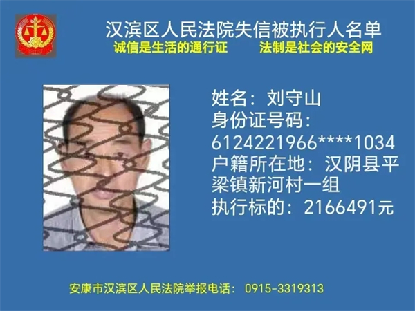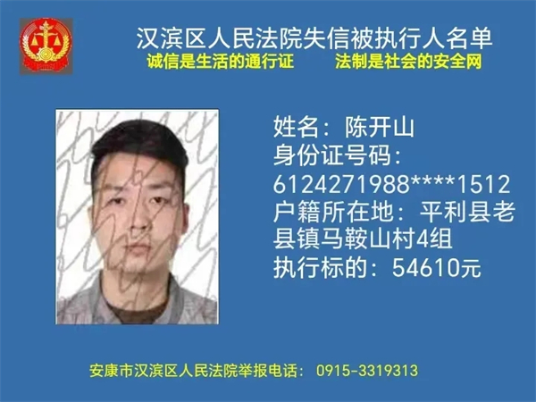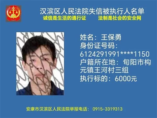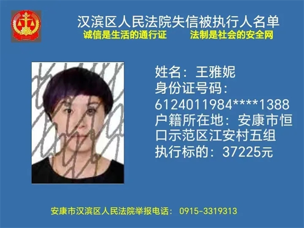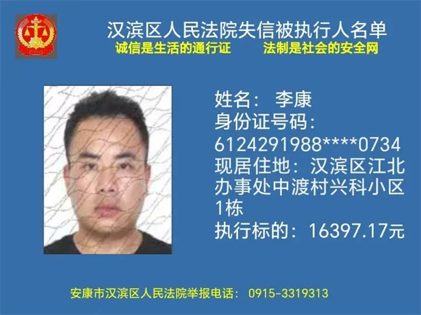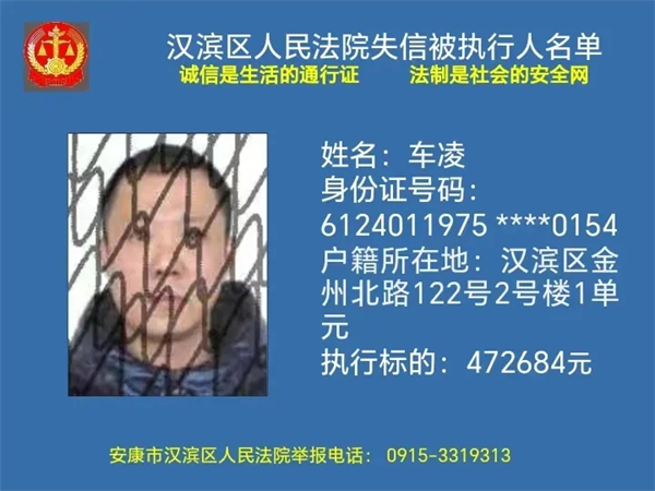 曝光失信 | 漢濱區人民法院失信被執行人曝光名單(2024年第1期)
