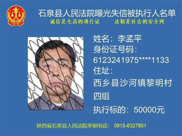 為了進一步加大執(zhí)行力度,保障勝訴當事人的合法權(quán)益,推進社會誠信體系建設,依照《中華人民共和國民事訴訟法》《最高人民法院關于公布失信被執(zhí)行人名單信息的若干規(guī)定》等法律、司法解釋的有關規(guī)定,現(xiàn)對一批已進入執(zhí)行程序,且尚未全部履行義務的被執(zhí)行人進行媒體曝光,歡迎廣大群眾支持石泉縣人民法院的工作,向我院提供被執(zhí)行人的財產(chǎn)線索,使生效法律文書能夠得到切實執(zhí)行,讓人民群眾切實感受到公平正義就在身邊。