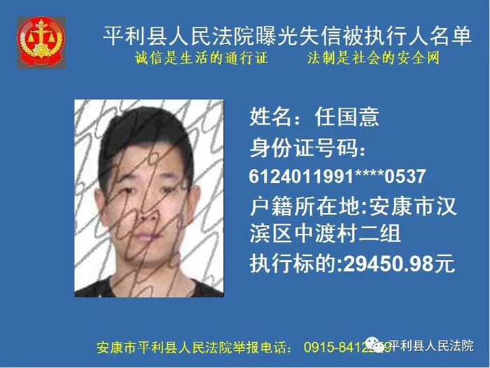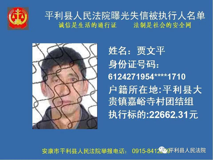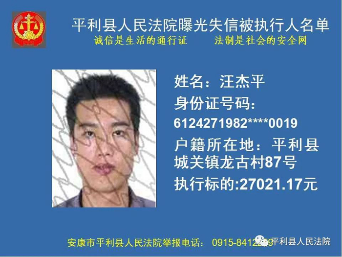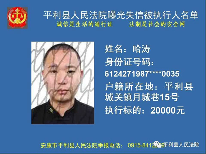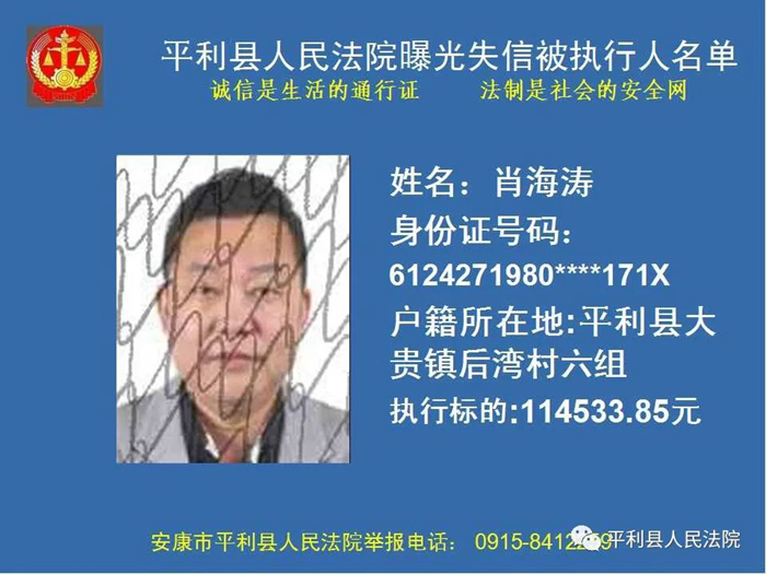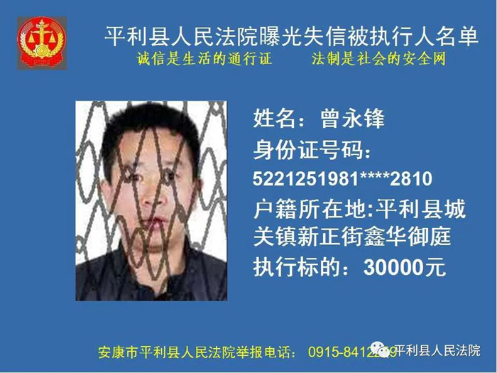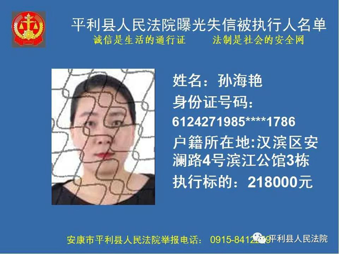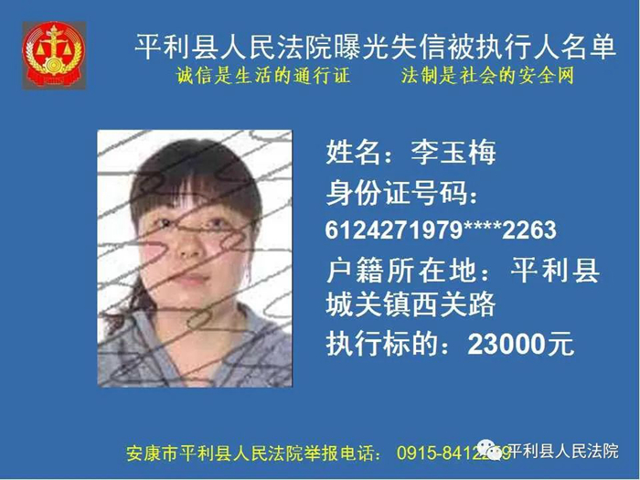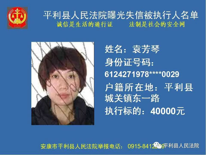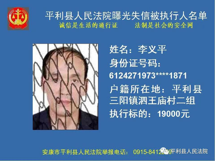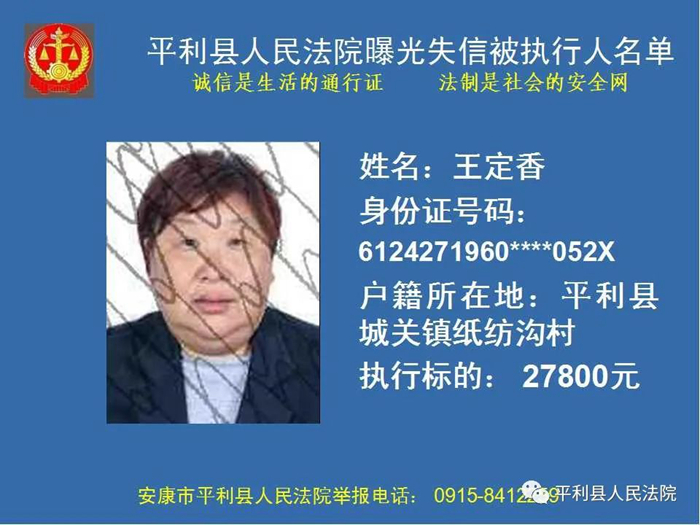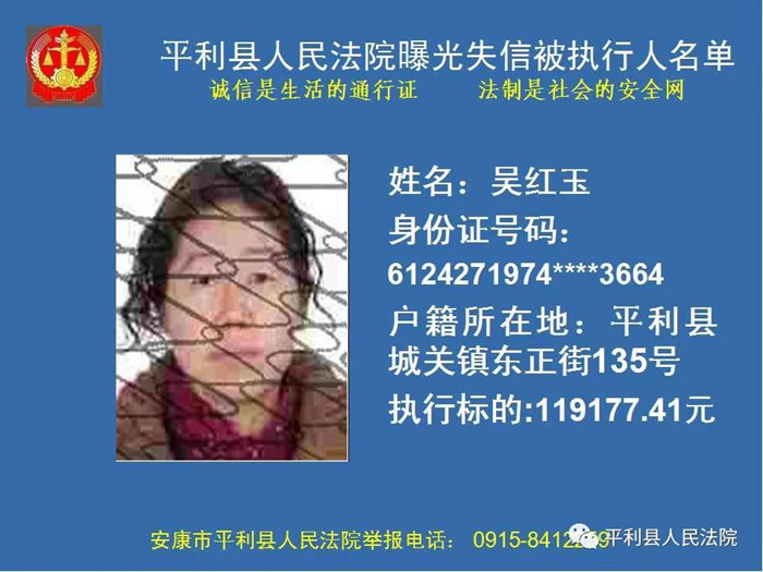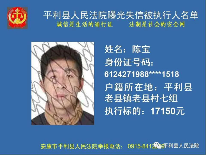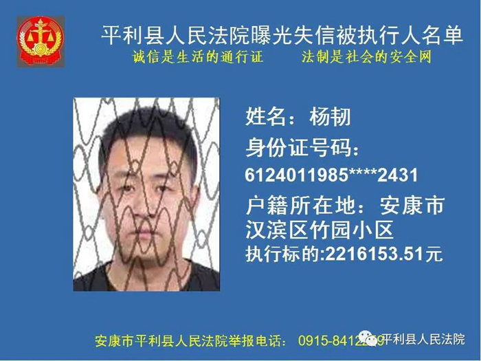 曝光失信 | 平利縣人民法院曝光失信被執(zhí)行人名單(2022年第一、二季度)