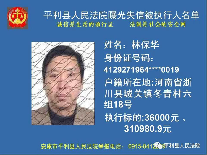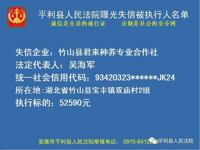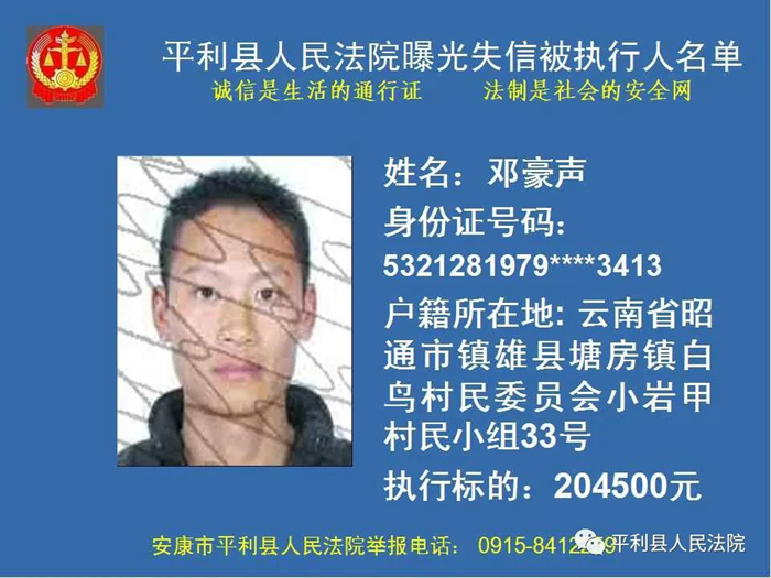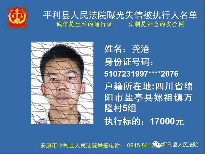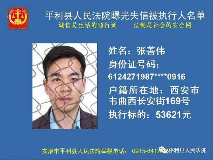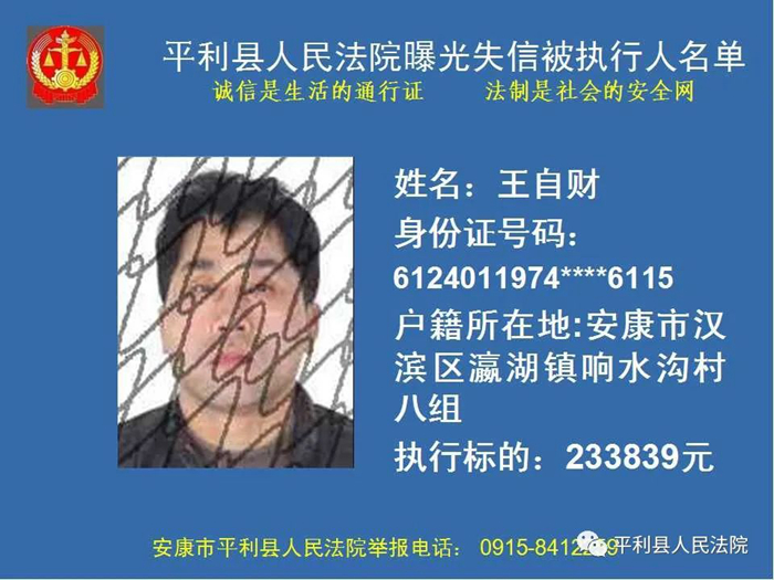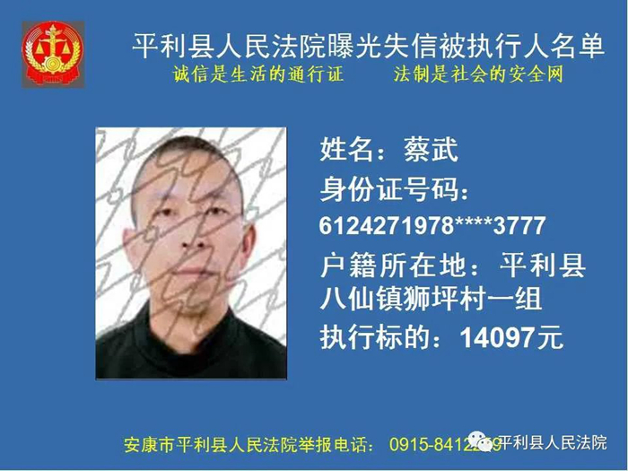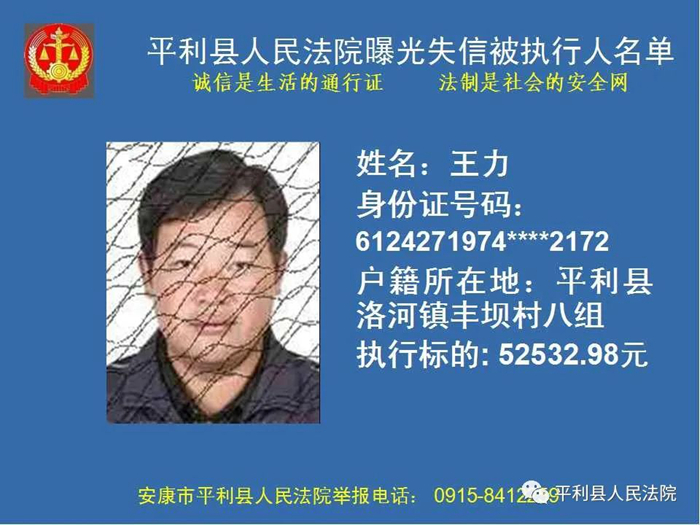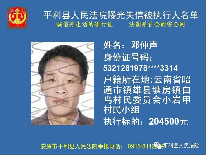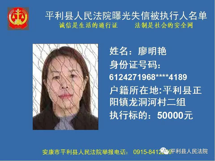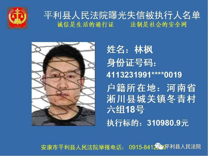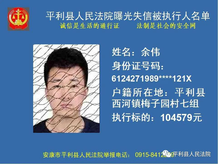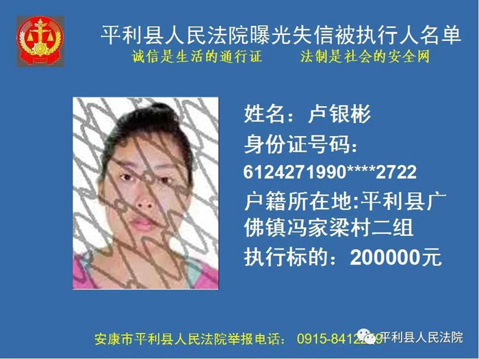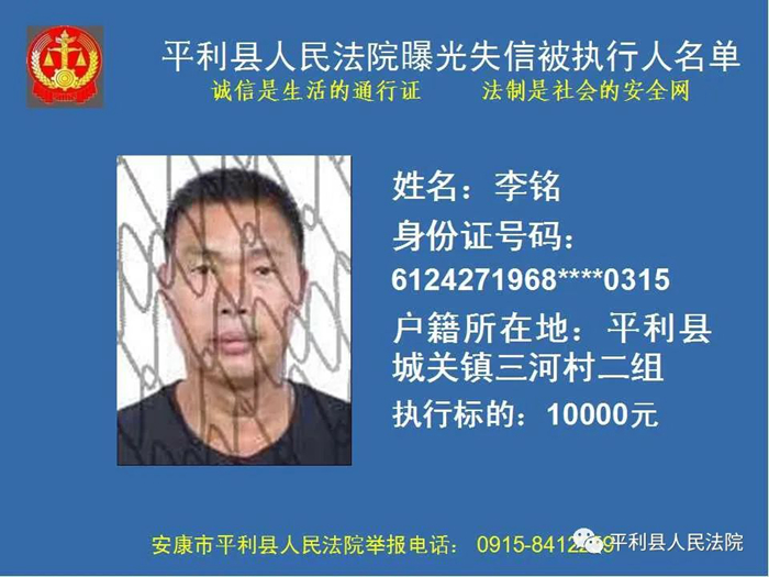 曝光失信 | 平利縣人民法院曝光失信被執(zhí)行人名單(2022年第一、二季度)