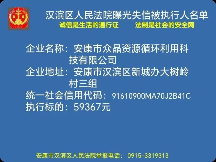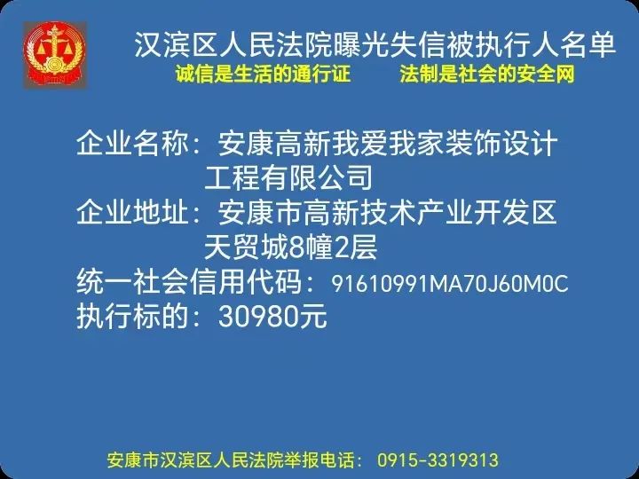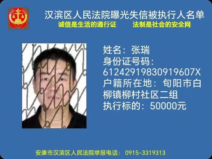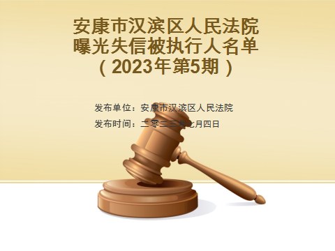 曝光失信 | 安康市漢濱區人民法院失信被執行人曝光名單(2023年第5期)