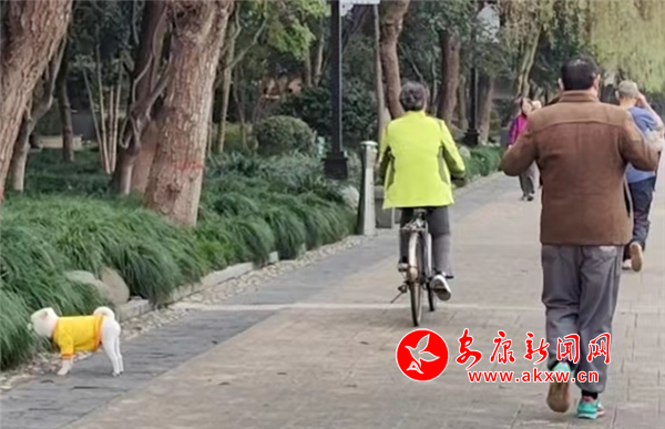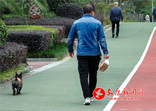 11月8日下午,金川街沿江步道有市民遛狗未牽繩。(圖文/馬歡)2w8安康新聞網