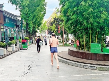9月30日,一位市民著泳裝跑過龍舟文化園,違反文明游泳相關規定,成為文明安康不和諧的音符。安文軒 攝……