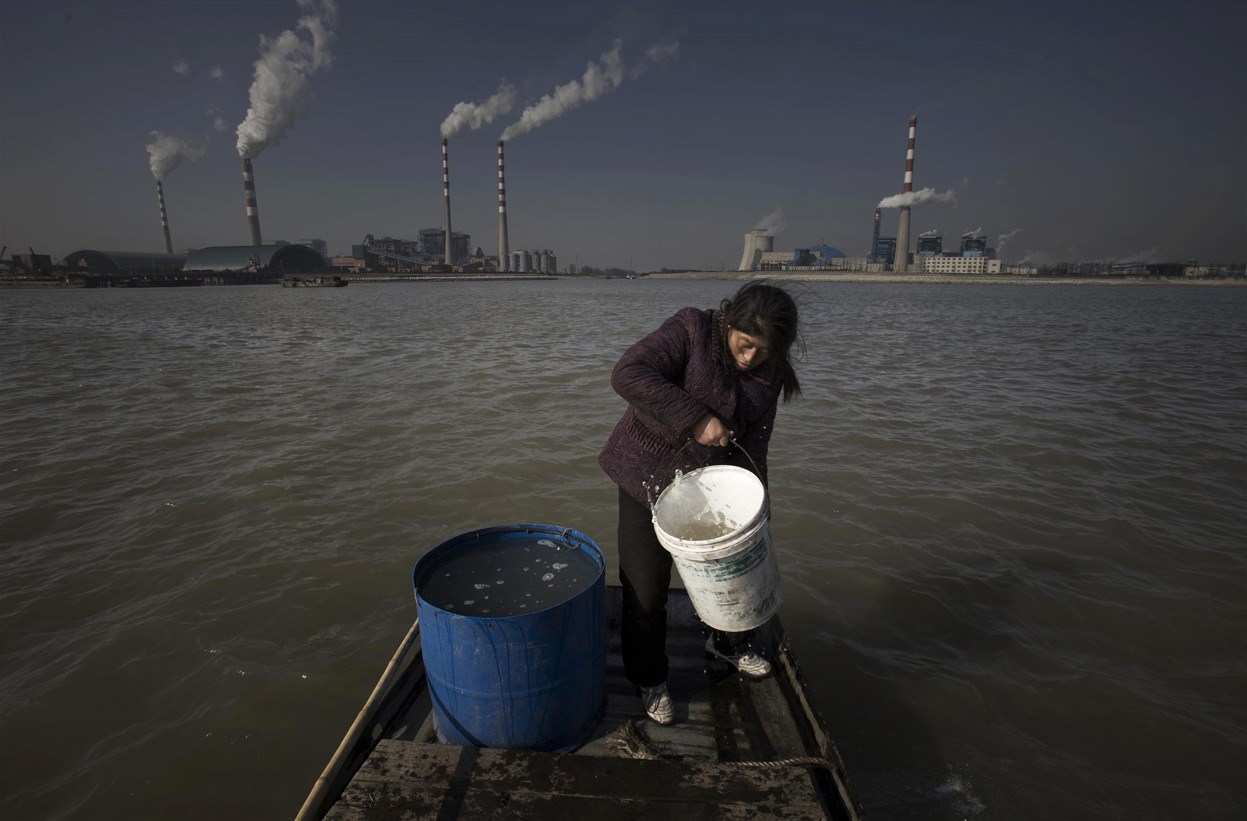 楊林港的一名婦女正從長江里打水。楊林港共有50多戶漁民,幾十年來一直以捕魚為生,喝的都是長江水。過去幾年,長江的污染越發嚴重,散發出一股奇怪的味道。2003……