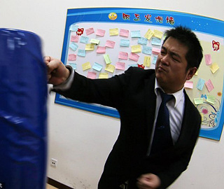 2014年1月7日,北京,12306客服中心,一接線員正在發泄不滿。圖片來源:CFP視覺中國2014年1月7日消息,北京。昨天,北京鐵路局召開春運情況通報會。記者獲悉,北……