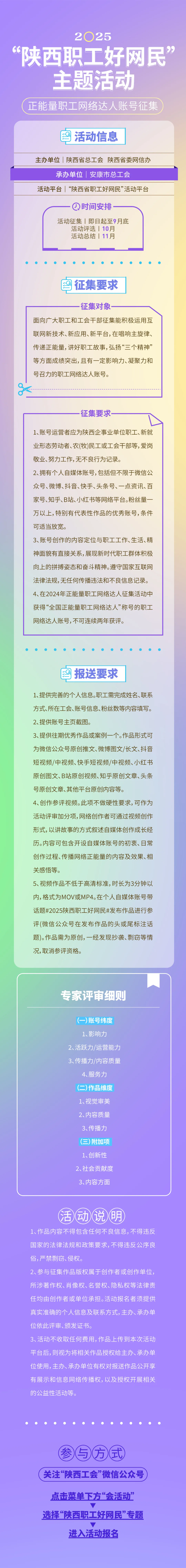 2025年“陜西職工好網民”正能量職工網絡達人賬號征集