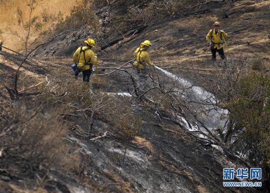 9月3日,在美國加利福尼亞州洛杉磯北郊的伯班克,消防員在滅火。iC9安康新聞網