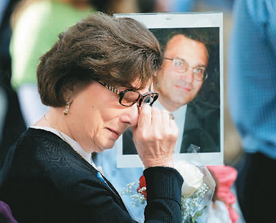 9月11日,美國紐約舉辦活動紀念“9·11”恐怖襲擊事件16周年。 圖為一名手持遇難者照片的女子。