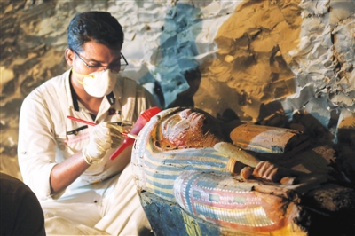 埃及文物部日前宣布,埃及考古人員在該國南部盧克索發現一座古埃及十八王朝時期為供奉阿蒙神服務的金匠之墓,該墓已有約3400年歷史。圖為9月9日,在埃及盧克索,考古人員在阿蒙神金匠墓內工作。 7p6安康新聞網
