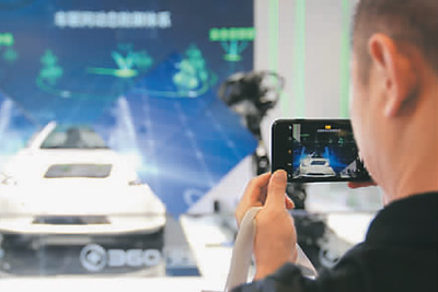 | 圖三為在上海舉行的2017年網絡安全博覽會暨網絡安全成就展上,一名觀眾在拍攝展臺上的網絡安全概念車。 |