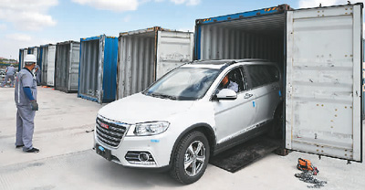 6月9日,在吉林省長春國際陸港,工人將車輛裝入貨柜。fDs安康新聞網