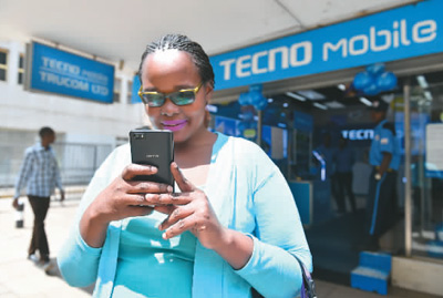 5月9日,在肯尼亞首都內羅畢市中心,一名當地用戶正在使用中國品牌手機。fDs安康新聞網