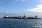 9月13日,四艘拖船將部分淹沒的挖沙船轉移至新加坡安樂島附近海域,以便進行水下搜索活動。新華社發(新加坡海事及港務管理局供圖) 新……