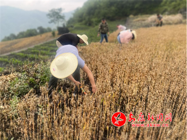 “放心吧,有我們幫忙,今兒上午就能把你家這小麥收完!”帶隊的鎮組織委員周漢梅笑著勸慰老陳。身形嬌小的她干起活來毫不含糊,動作麻利極了。只見她左手攏麥,右手不停地揮動鐮刀,在不間斷的“刷刷刷”聲中,一片片小麥應聲倒地,老陳則是用事先打好的“約子”將被“放倒”的小麥捆成“麥個子”,待收割完后齊齊運回家晾曬。
