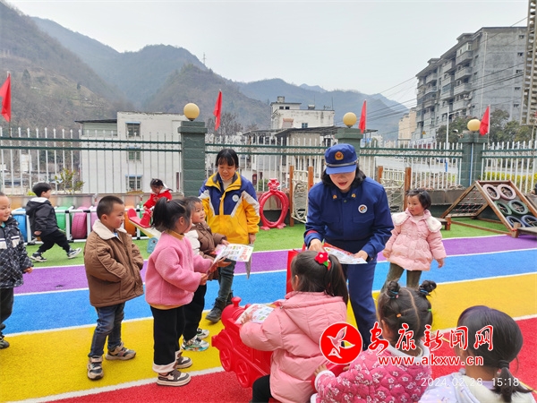 檢查過(guò)程中,鎮(zhèn)新時(shí)代文明實(shí)踐所消防服務(wù)隊(duì)志愿者和城關(guān)鎮(zhèn)消防所工作人員在廣大師生中開(kāi)展了消防知識(shí)宣傳活動(dòng)。在安坪村幼兒園操場(chǎng)上,身著“火焰藍(lán)”的小姐姐和小朋友們進(jìn)行了一場(chǎng)別開(kāi)生面的互動(dòng)。“小朋友們,你們知道發(fā)生火災(zāi)了要撥打哪個(gè)電話(huà)號(hào)碼嗎?”“119!”她用通俗易懂的語(yǔ)言和生動(dòng)的表情,向小朋友們講解消防知識(shí)宣傳冊(cè),并展示了消防服和消防器材,讓孩子們?cè)谳p松愉快的氛圍中增強(qiáng)了安全意識(shí)。